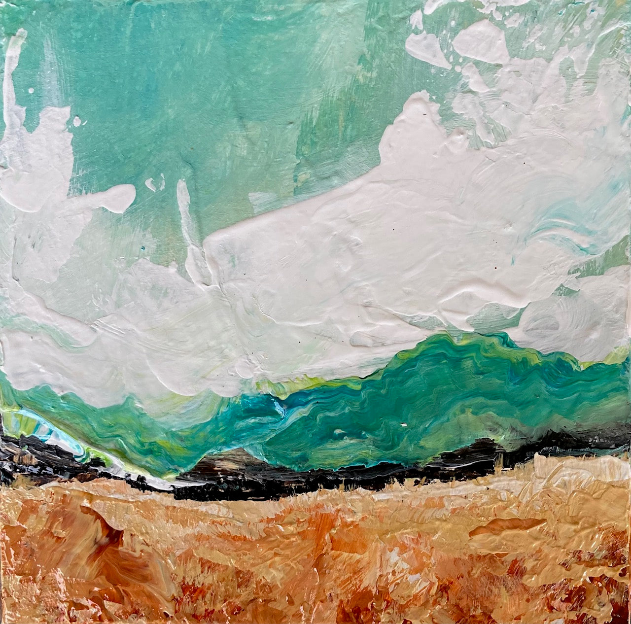 Field Study is a 6 x 6 inch landscape of something that has captured my imagination and always draws my eye to the simple beauty. The bleached out fields under the beautiful blue sky in rural Ontario. Add some cloud formations and the image is timeless feeds my soul.