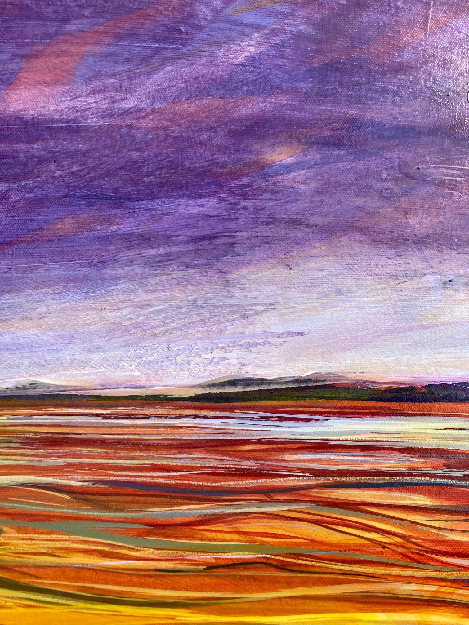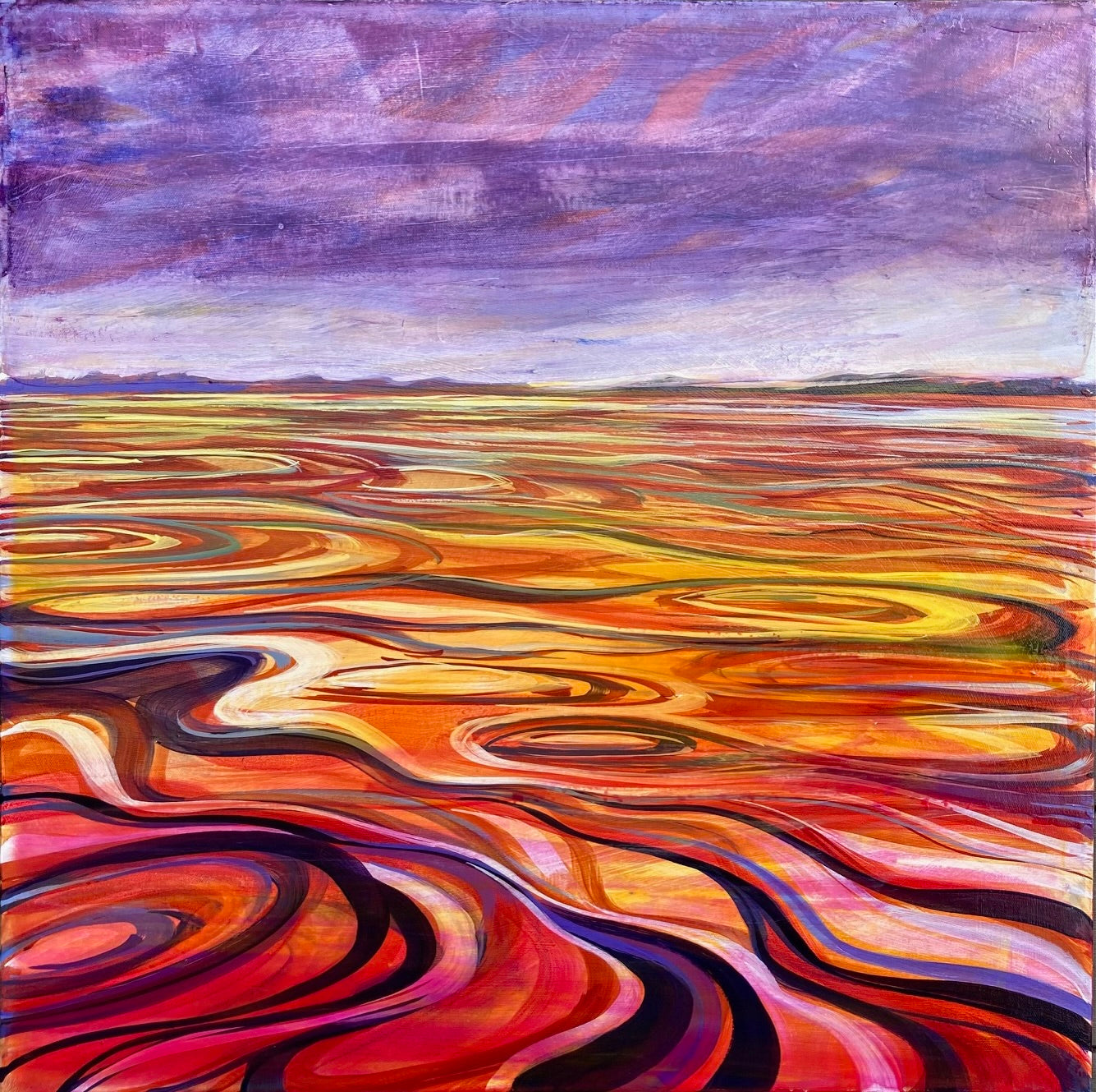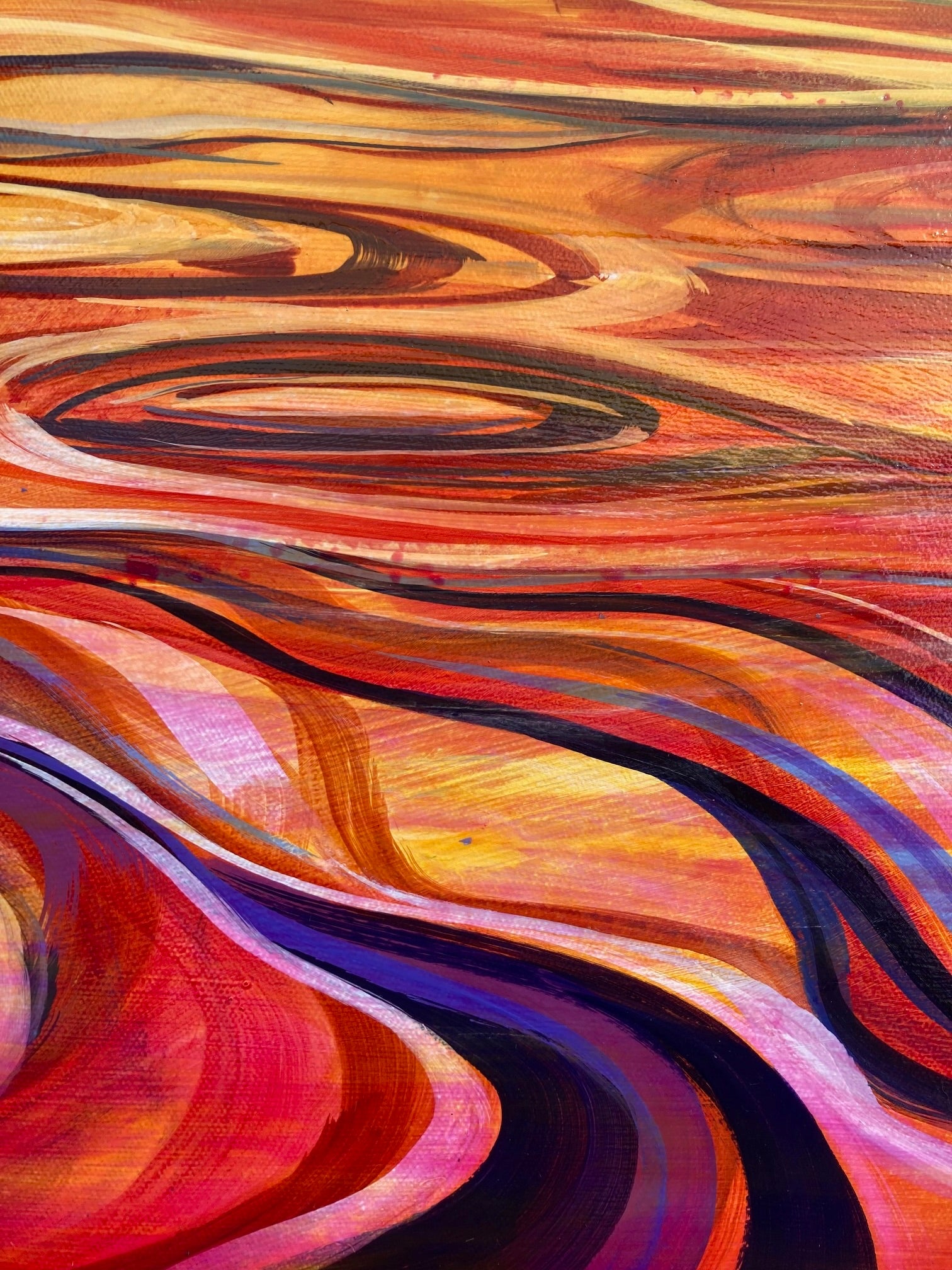 Who wants to go to Fire Lake? Remember Bob Seger's classic song? It popped into my head looking at this new original painting I just completed while taking part in The Merrickville Art Walk. I painted outside on local store's porch. Thank you "All the Things" for the opportunity. People came by and watched me put it down so I had to focus and be brave. This colourful celebration of summer is painted in acrylic and is 24 x 24 inches on a stretched gallery canvas. Satin Varnish is added as a top coat for a layer of protection