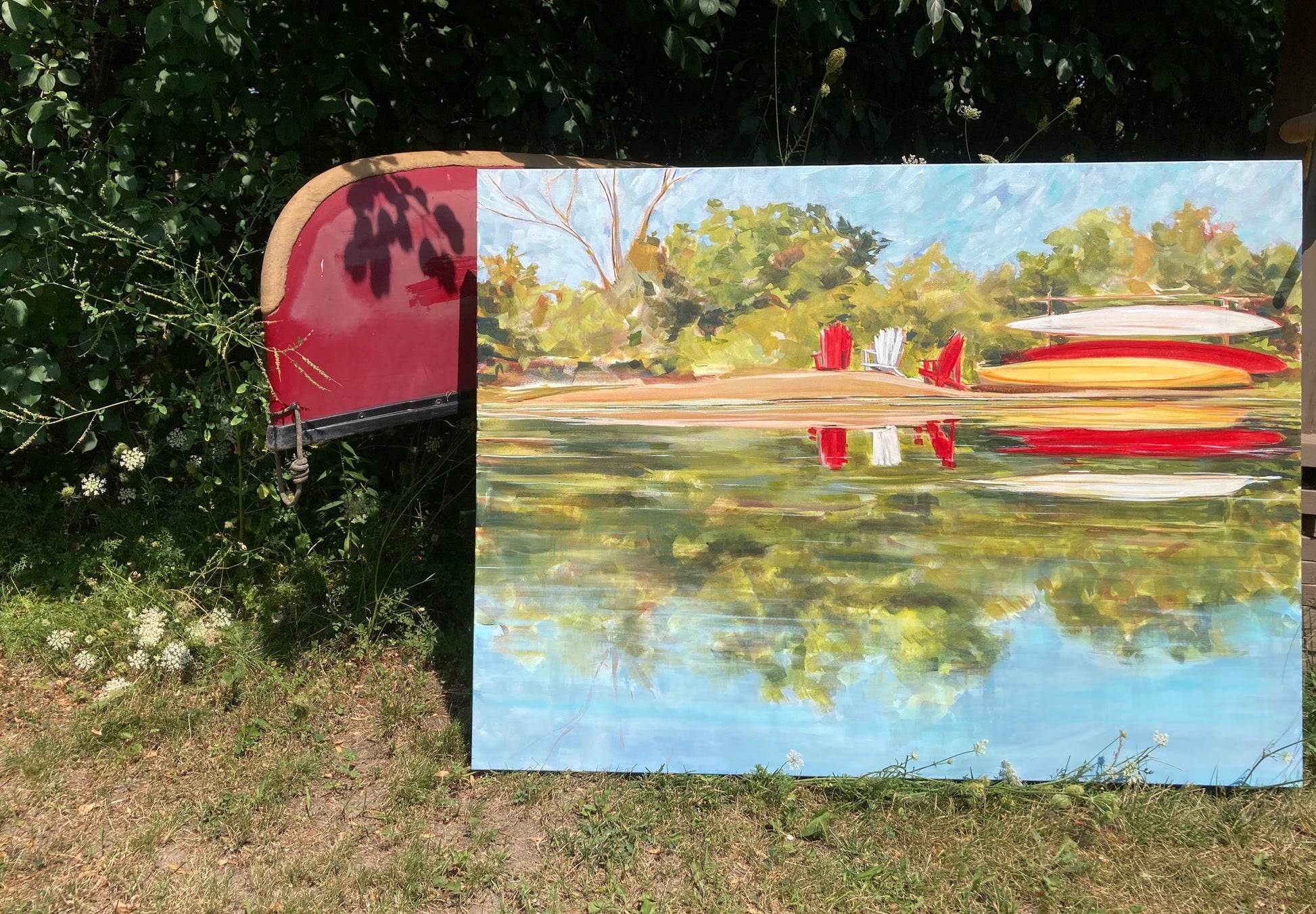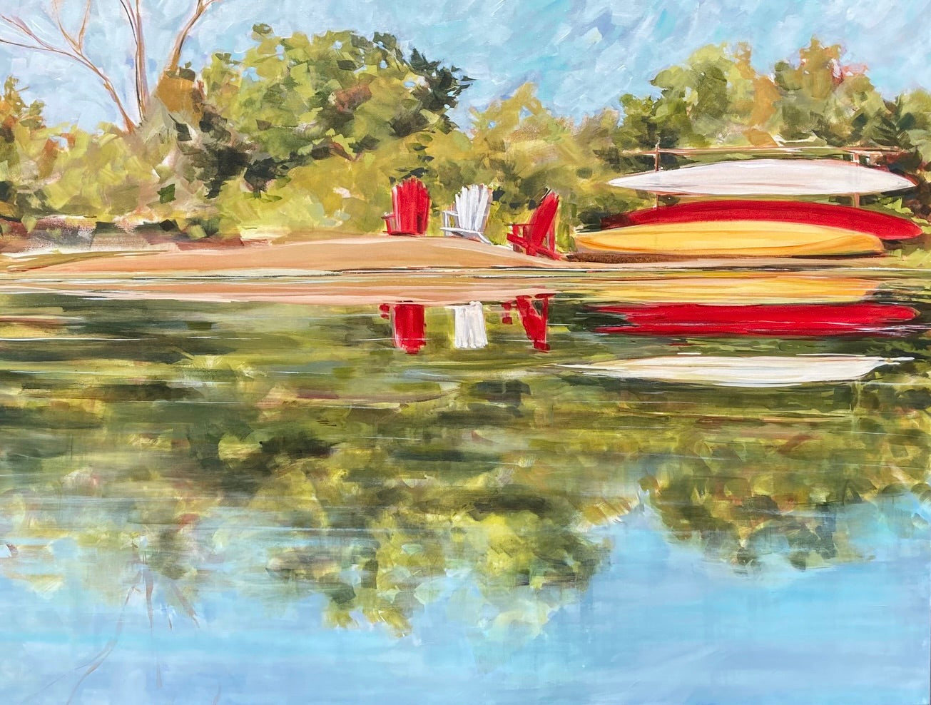 Life in a Northern Town captures a moment in time captured on an ideal day kayaking on the Rideau River. The tree canoes reflecting in the water are truly a symbol of out great land. I love the red and while chairs and how the line up along the shore. A perfect summer day to last for years.