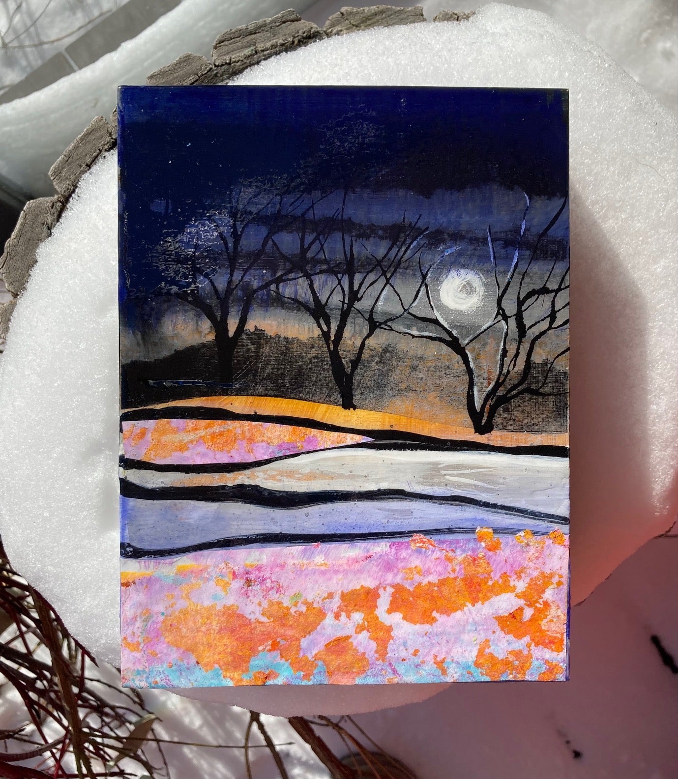 6 x 8 inches acrylic paint on a hand made cradled wood (support surface made by hand in Quebec ) Gallery depth sides
