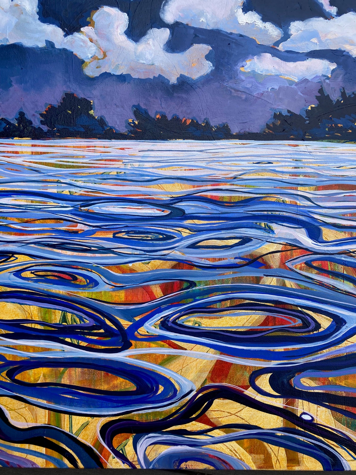 Also pictured below is the underpainting so you can see what lies under the river's surface.