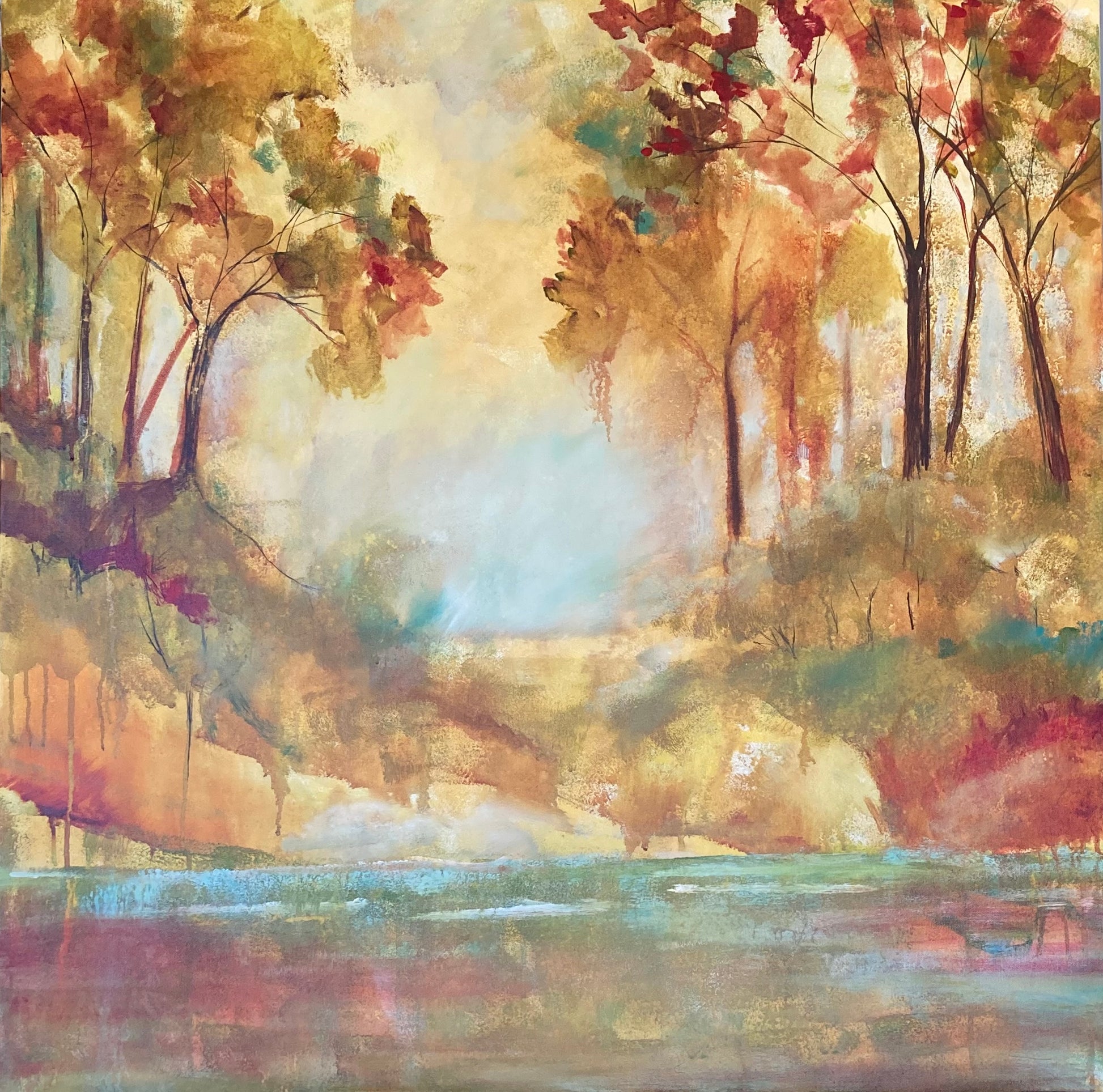 Delicately walking a line between reality and abstraction, "Fall Wonder" is a new original atmospheric landscape painting.